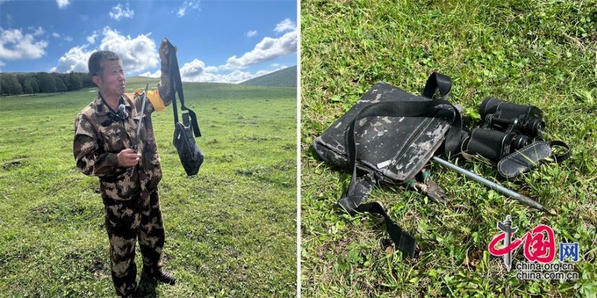 王玉發(fā)放牧巡邊時(shí)帶的“裝備包”,里面裝著望遠(yuǎn)鏡、錐子、鉗子。中國網(wǎng)記者 吳佳潼 攝