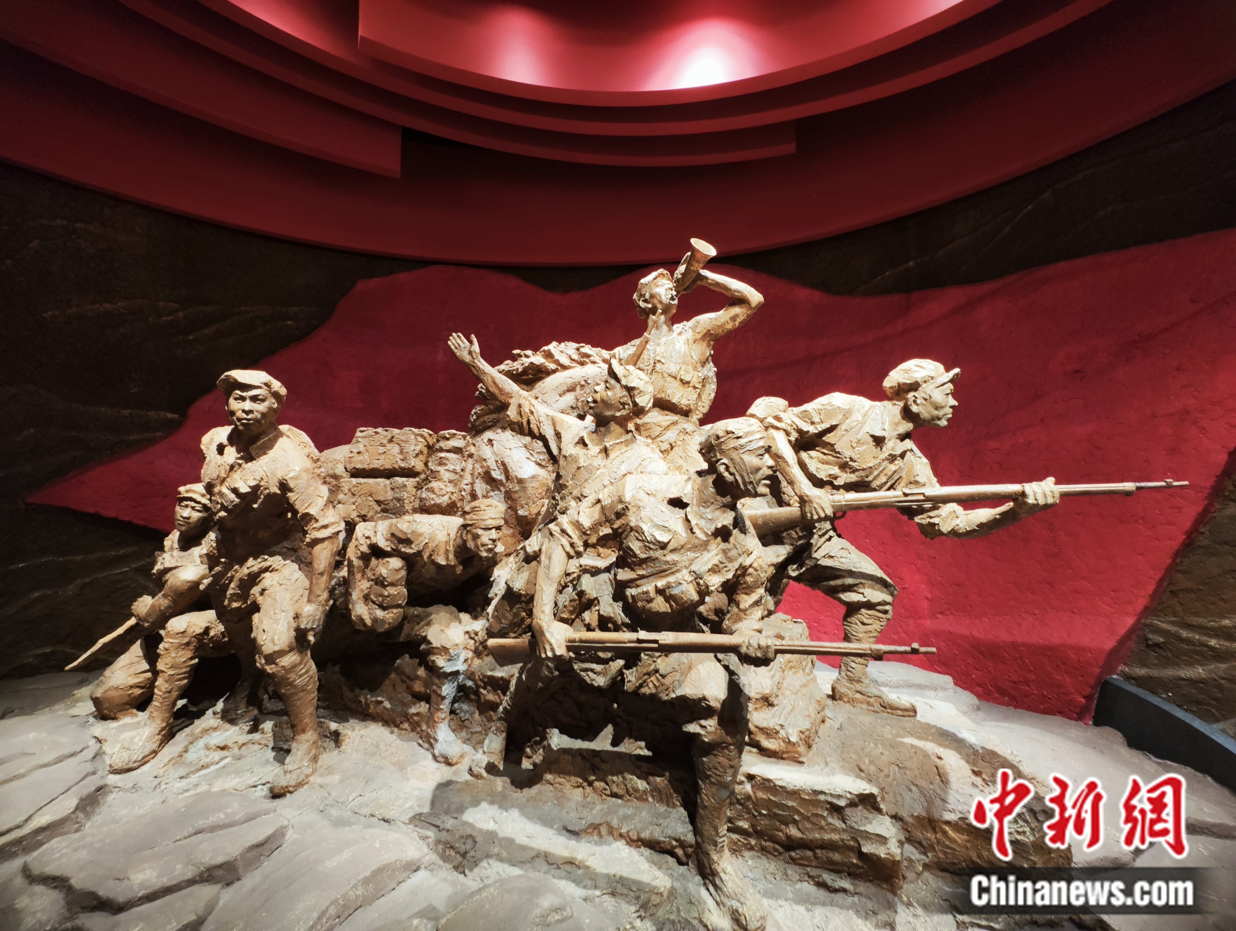寧化縣長征精神教育基地內,一組紅軍戰(zhàn)士的雕塑。劉越 攝