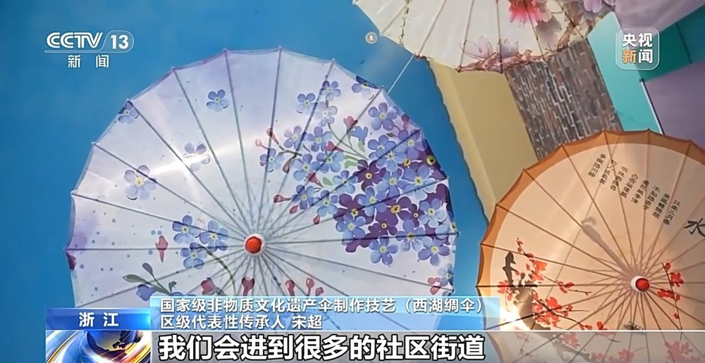 國家級非物質(zhì)文化遺產(chǎn)傘制作技藝(西湖綢傘)區(qū)級代表性傳承人 宋超:我們會進(jìn)到很多的社區(qū)街道,我們會進(jìn)到中小學(xué)的校園、博物館、非遺展示館等等這樣的地方,去進(jìn)行我們西湖綢傘技藝的展示展覽,包括各種各樣的體驗(yàn)活動,以此讓更多人了解和認(rèn)識到我們西湖綢傘這項(xiàng)技藝。