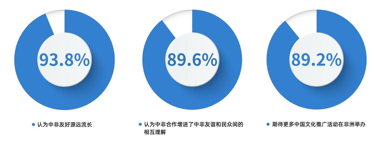 加強(qiáng)中非友好,中方講一個(gè)“親”字。國之交在于民相親,中非關(guān)系的根基和血脈在人民,中非關(guān)系發(fā)展更多面向人民。在調(diào)查中,高達(dá)93.8%的受訪者認(rèn)為中非友好源遠(yuǎn)流長;89.6%的受訪者認(rèn)為中非合作增進(jìn)了中非友誼和民眾間的相互理解;89.2%的受訪者期待更多中國文化推廣活動在非洲舉辦。