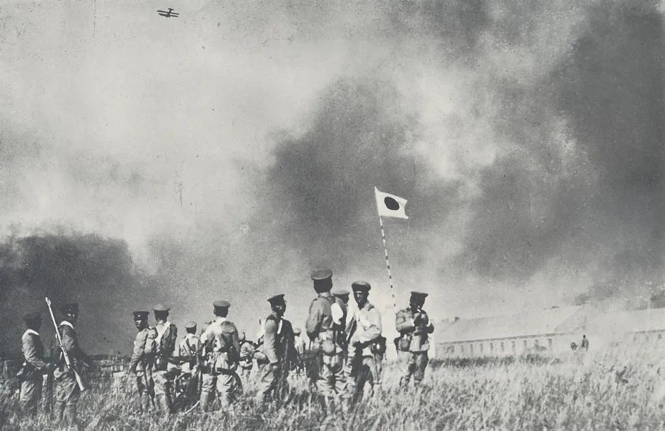 圖為“九一八”事變前日軍在中國大營附近演習,以便在鐵路炸毀后立刻進攻中國駐軍營地。