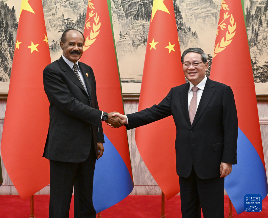 國(guó)務(wù)院總理李強(qiáng)9月3日上午在北京釣魚(yú)臺(tái)國(guó)賓館會(huì)見(jiàn)來(lái)華出席中非合作論壇北京峰會(huì)的厄立特里亞總統(tǒng)伊薩亞斯。