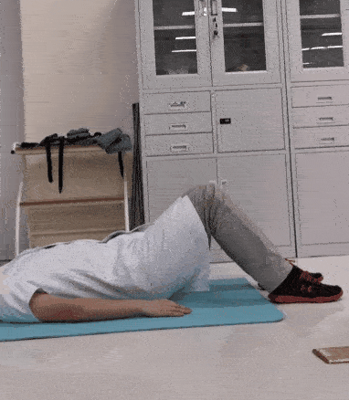 平躺在墊子上,雙腿分開,與肩同寬,雙手置于身體兩側(cè)。緩慢向上做抬臀動作,停留一會兒,然后恢復(fù)至初始動作。此為一個完整動作。8~12次/組,做3組。