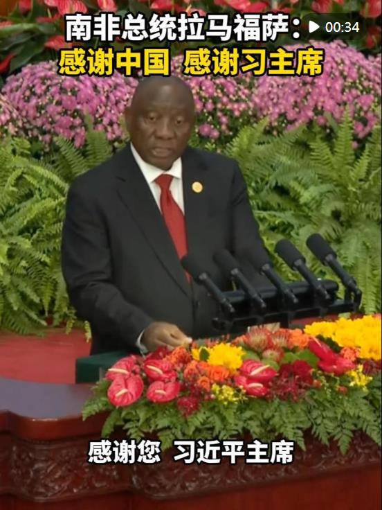 南非總統(tǒng)拉馬福薩5日在中非合作論壇北京峰會開幕式上說,中國與非洲人民的友誼和團結源遠流長?!拔覀兏兄x中國長期以來致力于與非洲大陸擴大合作、協(xié)同發(fā)展。感謝您,習近平主席?!?/p>