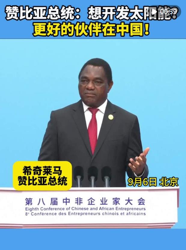 贊比亞總統(tǒng)希奇萊馬6日在第八屆中非企業(yè)家大會(huì)開(kāi)幕式上稱贊中國(guó)技術(shù),呼吁非中企業(yè)加強(qiáng)技術(shù)合作。誰(shuí)是更好的能源領(lǐng)域合作伙伴?誰(shuí)能提供最好的太陽(yáng)能發(fā)電技術(shù)?他告訴非洲企業(yè)家:“那就是你們的中國(guó)同行!”