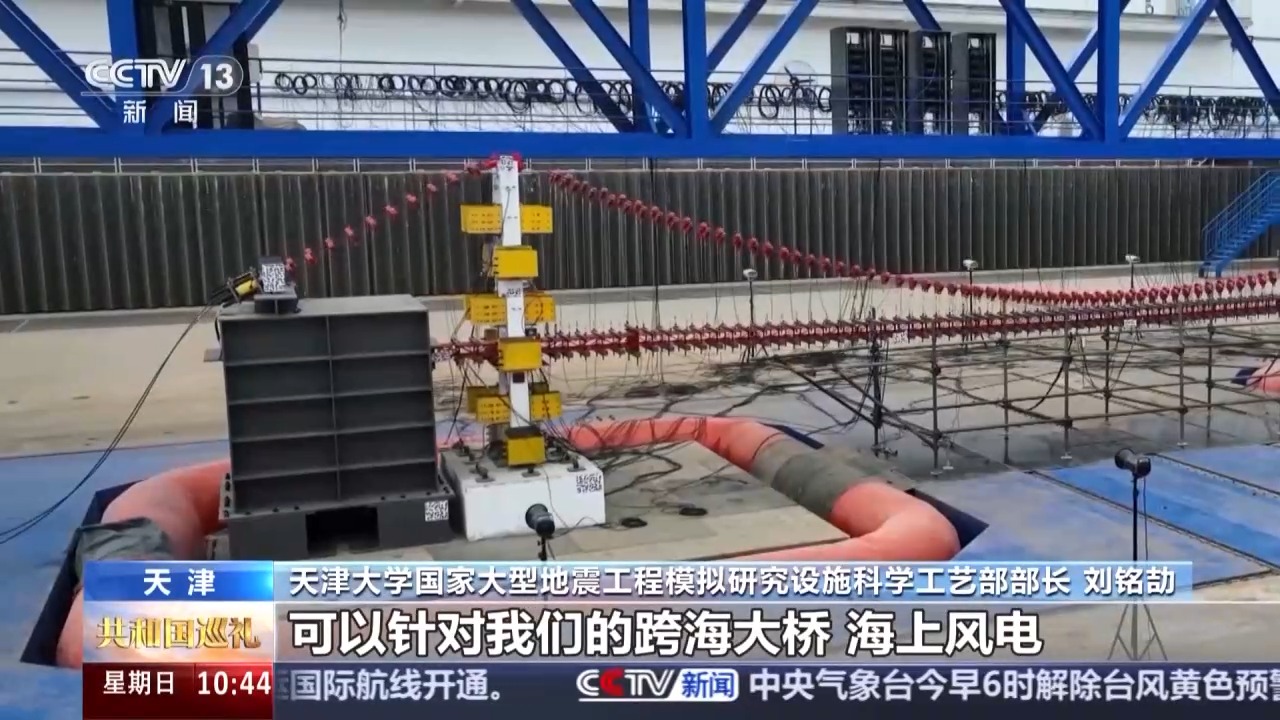 天津大學(xué)國(guó)家大型地震工程模擬研究設(shè)施科學(xué)工藝部部長(zhǎng) 劉銘劼:我們這里面是世界上唯一的一套,可以實(shí)現(xiàn)水下雙臺(tái)地震、波浪、水流聯(lián)合模擬的一個(gè)試驗(yàn)裝置,可以在3米水深下工作,可以針對(duì)我們的跨海大橋、海上風(fēng)電這些海上“超級(jí)工程”進(jìn)行更加真實(shí)的地震模擬研究。