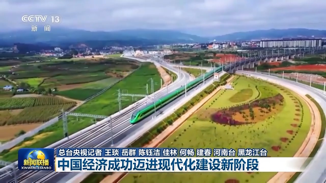 今年是中華人民共和國成立75周年。75載風(fēng)雨兼程,75載崢嶸歲月,中國共產(chǎn)黨領(lǐng)導(dǎo)下的新中國由一窮二白到全面小康,創(chuàng)造了世所罕見的經(jīng)濟快速發(fā)展奇跡和社會長期穩(wěn)定奇跡。黨的十八大以來,以習(xí)近平同志為核心的黨中央團結(jié)帶領(lǐng)全國各族人民接續(xù)奮斗、砥礪前行,成功推進和拓展了中國式現(xiàn)代化,中華民族迎來了從站起來、富起來到強起來的偉大飛躍,中華民族偉大復(fù)興進入了不可逆轉(zhuǎn)的歷史進程?!缎侣劼?lián)播》今天推出系列報道【奮進強國路 闊步新征程】,首先來看《中國經(jīng)濟成功邁進現(xiàn)代化建設(shè)新階段》。