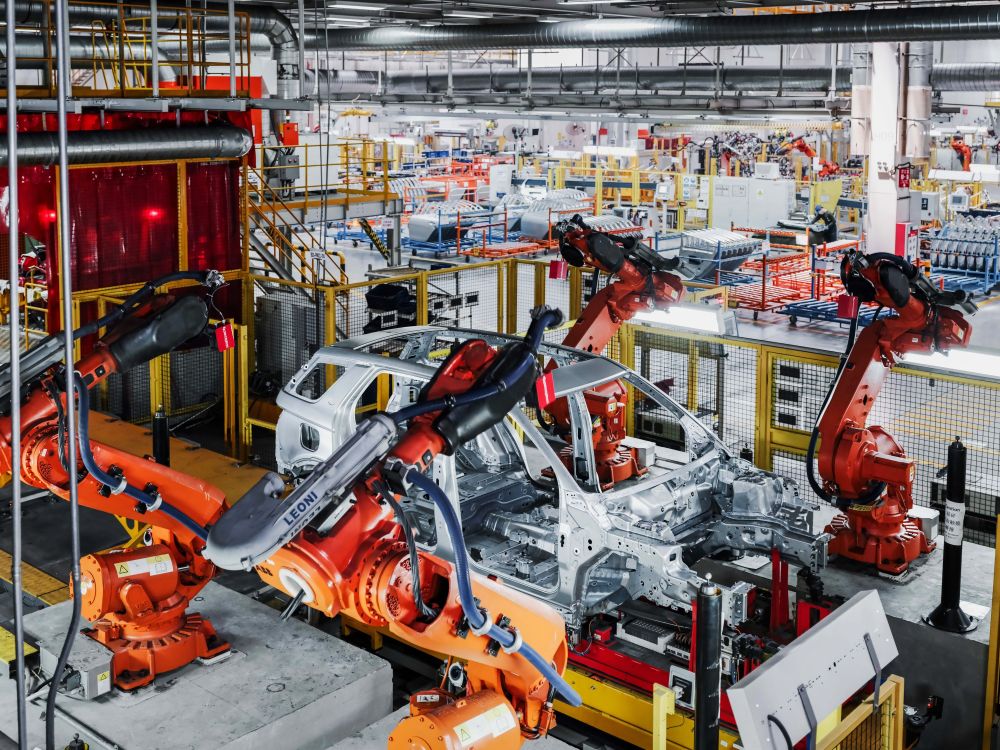 這是6月13日拍攝的奇瑞捷豹路虎汽車有限公司常熟生產基地生產線。