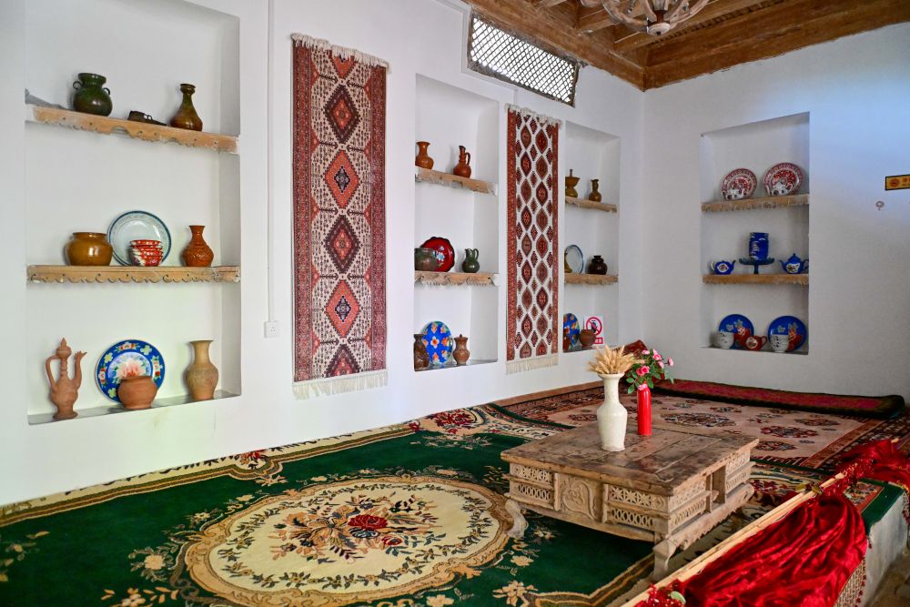 來到龜茲小巷,各式各樣、色彩明艷的木門總能讓游人目光停駐,推門入院又是另一番風(fēng)景。走進(jìn)“爺爺?shù)募摇甭糜渭以L院,傳統(tǒng)古建筑氣息迎面而來,這座有上百年歷史的民居融和了多民族建筑藝術(shù)特點(diǎn),門窗設(shè)計(jì)、前檐廊木結(jié)構(gòu)等與我國(guó)傳統(tǒng)木構(gòu)建筑一脈相承。