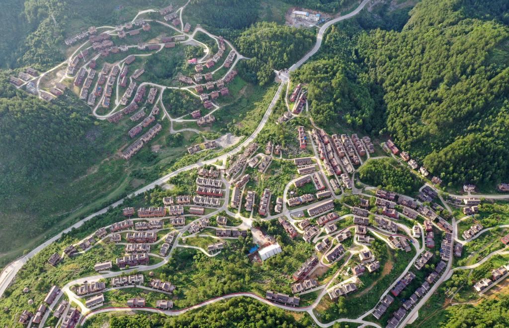 這是廣西南丹縣里湖瑤族鄉(xiāng)朵努社區(qū)“千家瑤寨·萬戶瑤鄉(xiāng)”易地扶貧搬遷安置點(2020年8月4日攝,無人機照片)。新華社記者 陸波岸 攝