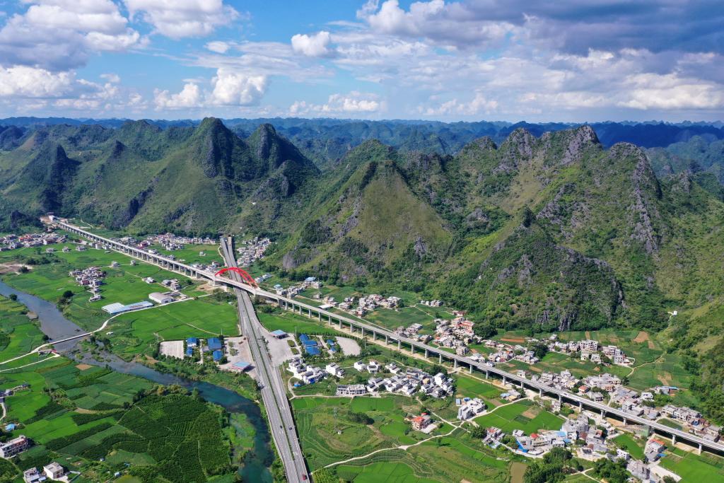 這是廣西都安瑤族自治縣境內(nèi)的交通路網(wǎng)(2021年8月31日攝,無人機照片)。新華社記者 陸波岸 攝