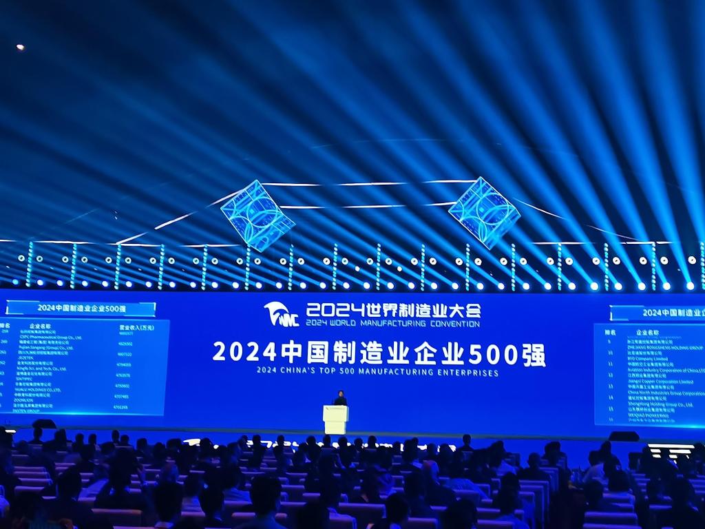 9月20日在安徽省合肥市召開的2024世界制造業(yè)大會(huì)上,“2024中國(guó)制造業(yè)企業(yè)500強(qiáng)”榜單發(fā)布。新華社記者 胡銳 攝