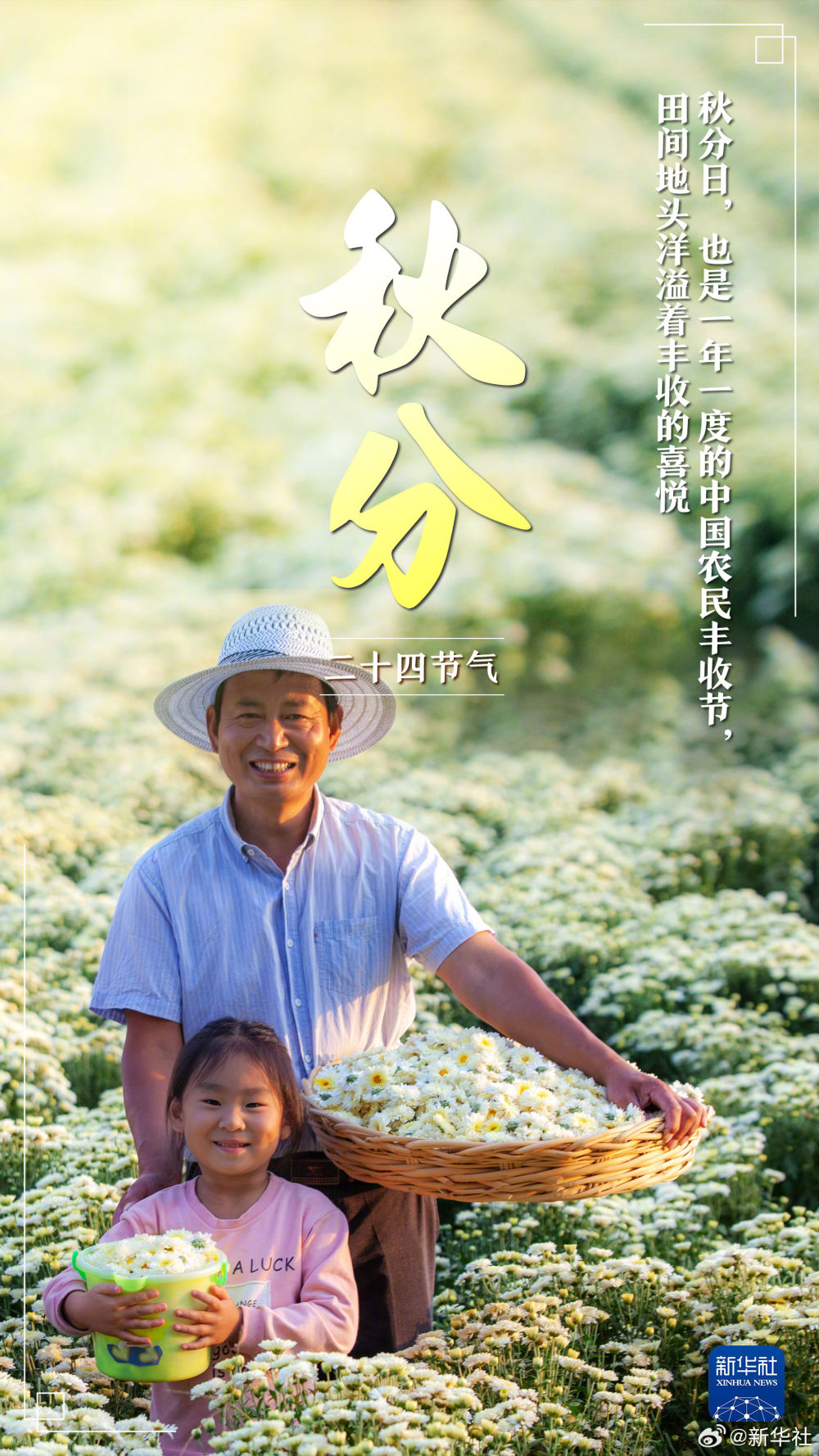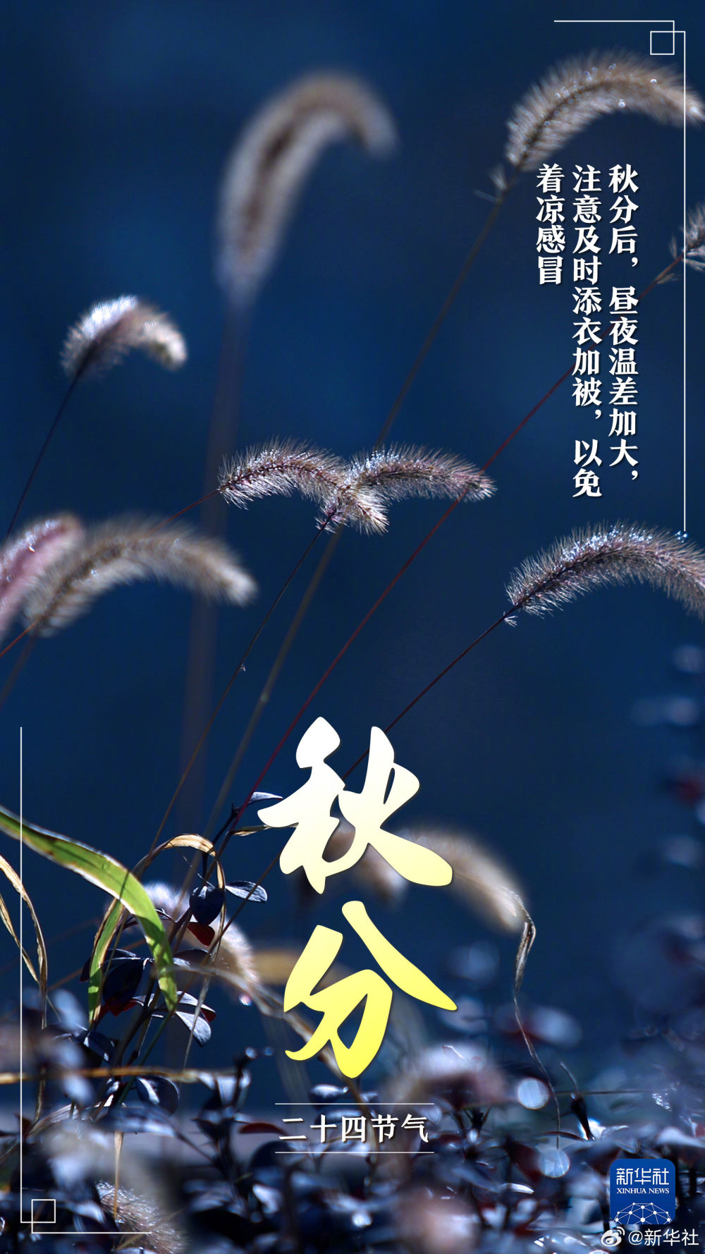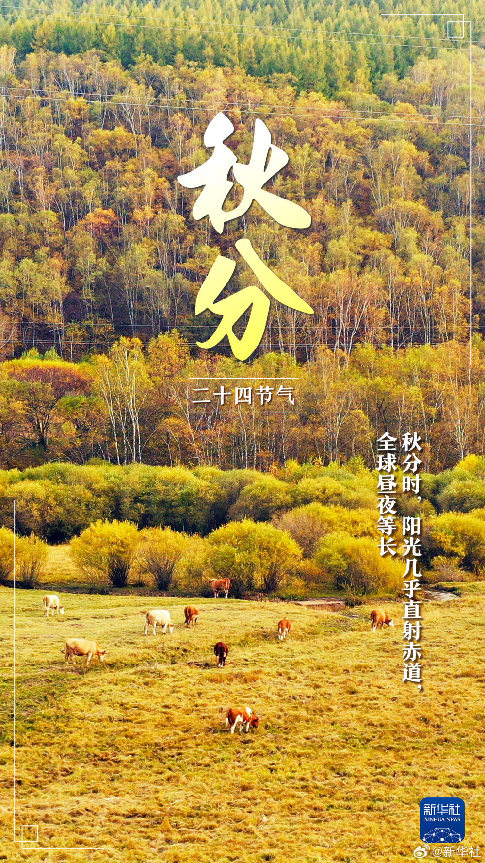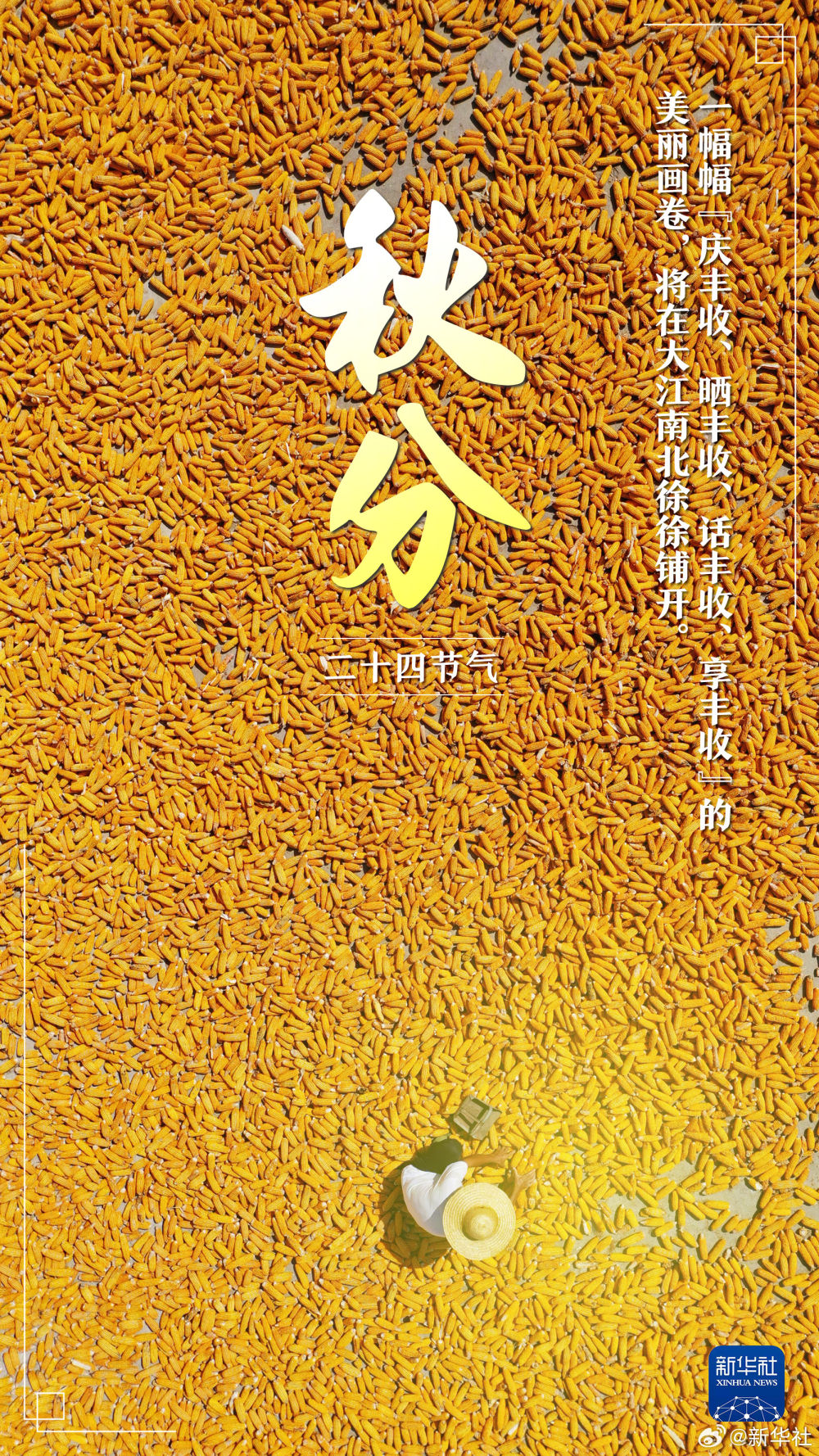 【今日秋分,共慶豐收】①北京時間9月22日20時43分迎秋分;②秋分陽光幾乎直射赤道,晝夜等長;③秋分后晝夜溫差加大,記得及時添衣加被;④秋分也是農(nóng)民豐收節(jié)。讓我們在瓜果飄香、碩果累累的喜悅中,一起迎接收獲的金秋!