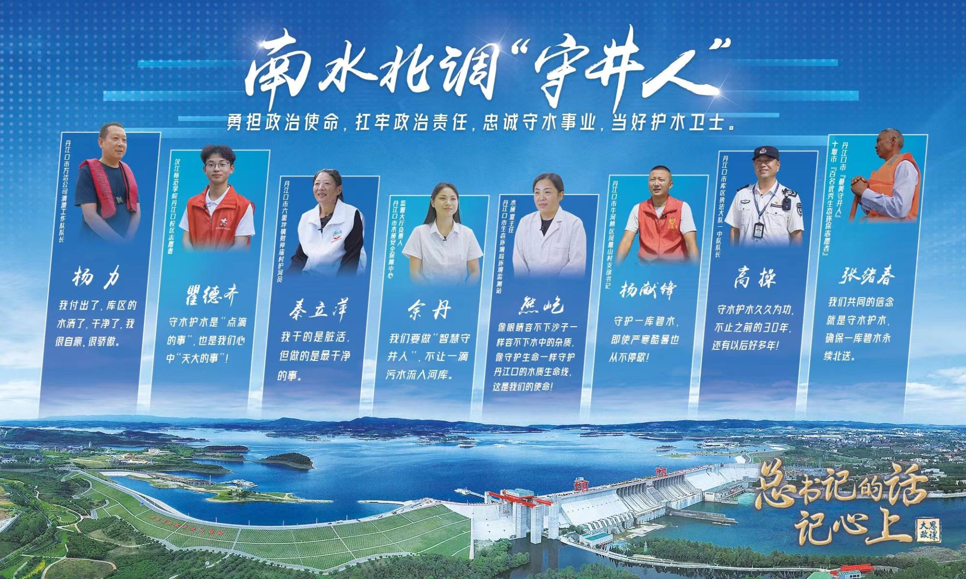 以前是漁民現(xiàn)在是清漂隊(duì)員的張旭春,十年守護(hù)重要入庫(kù)河流的護(hù)水員秦立萍,二十四小時(shí)在線的“智慧守井人”余丹,巡庫(kù)三十年的庫(kù)區(qū)執(zhí)法隊(duì)隊(duì)長(zhǎng)高操……在這塊土地上,他們把水看得比自己的生命還重要。