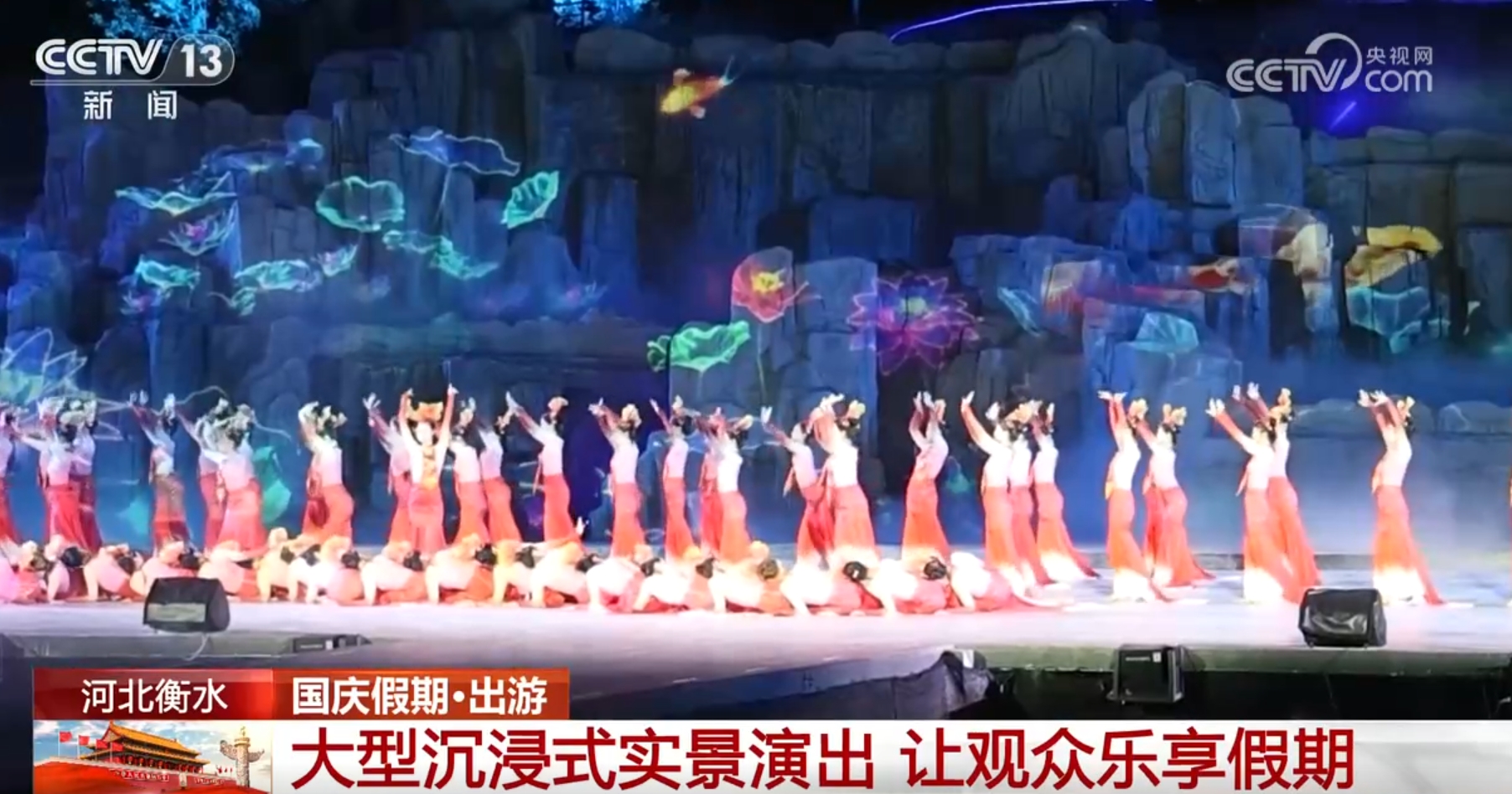 不僅白天能看演出,夜幕降臨后,在河北衡水市,大型沉浸式實景演出《大美衡水 湖韻千年》精彩上演,主舞臺演出以水為脈,通過音、舞、詩、畫巧妙融合,再加上3D投影等特效技術(shù)的靈活運用,營造出強(qiáng)烈的視覺效果和藝術(shù)沖擊力。