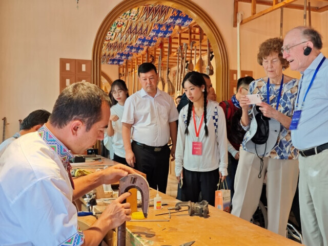 ▲2024年6月,“中國(guó)新疆的歷史與未來(lái)”國(guó)際論壇的外國(guó)專家在疏附縣“中國(guó)新疆民族樂(lè)器村”考察。中國(guó)民族報(bào)記者李翠攝
