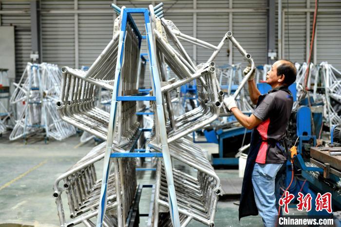 舊鎮(zhèn)工業(yè)園聚集著不少從深圳搬遷而來的臺(tái)企,主要生產(chǎn)自行車車架、腳踏板、車鎖、鈴鐺,鋁管等,形成較為完整的自行車產(chǎn)業(yè)鏈。中新網(wǎng)記者呂明 攝