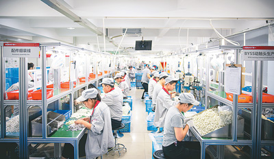 工人在浙江省樂清市奔一新能源有限公司生產(chǎn)線上工作。