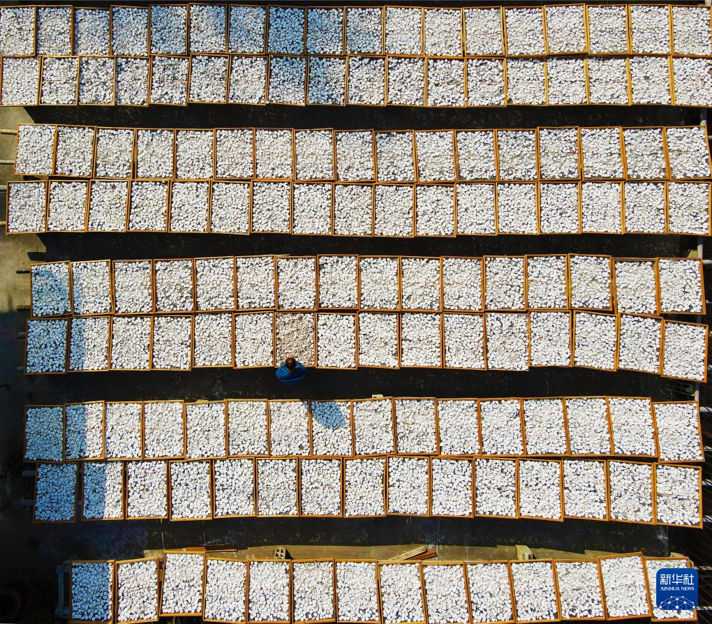 10月4日,在安徽省安慶市岳西縣響腸鎮(zhèn)千佛塔村,村民在曬茯苓(無人機照片)。新華社發(fā)(吳均奇攝)