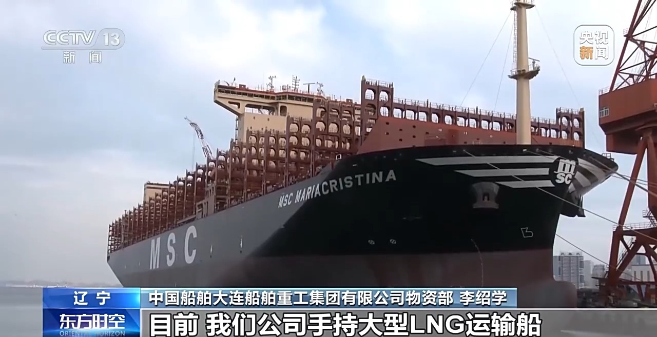 這兩天,大連這家船舶公司一艘在建大型液化天然氣(LNG)運(yùn)輸船??吭诖a頭泊位,近千名工人正在進(jìn)行船舶舾裝作業(yè)。在碼頭的另一側(cè),一艘LNG雙燃料集裝箱船正在做交付前最后的調(diào)試。這艘海上“巨無霸”采用天然氣和燃油雙燃料驅(qū)動,能夠減少碳排放20%以上,減少100%的硫氧化物排放。