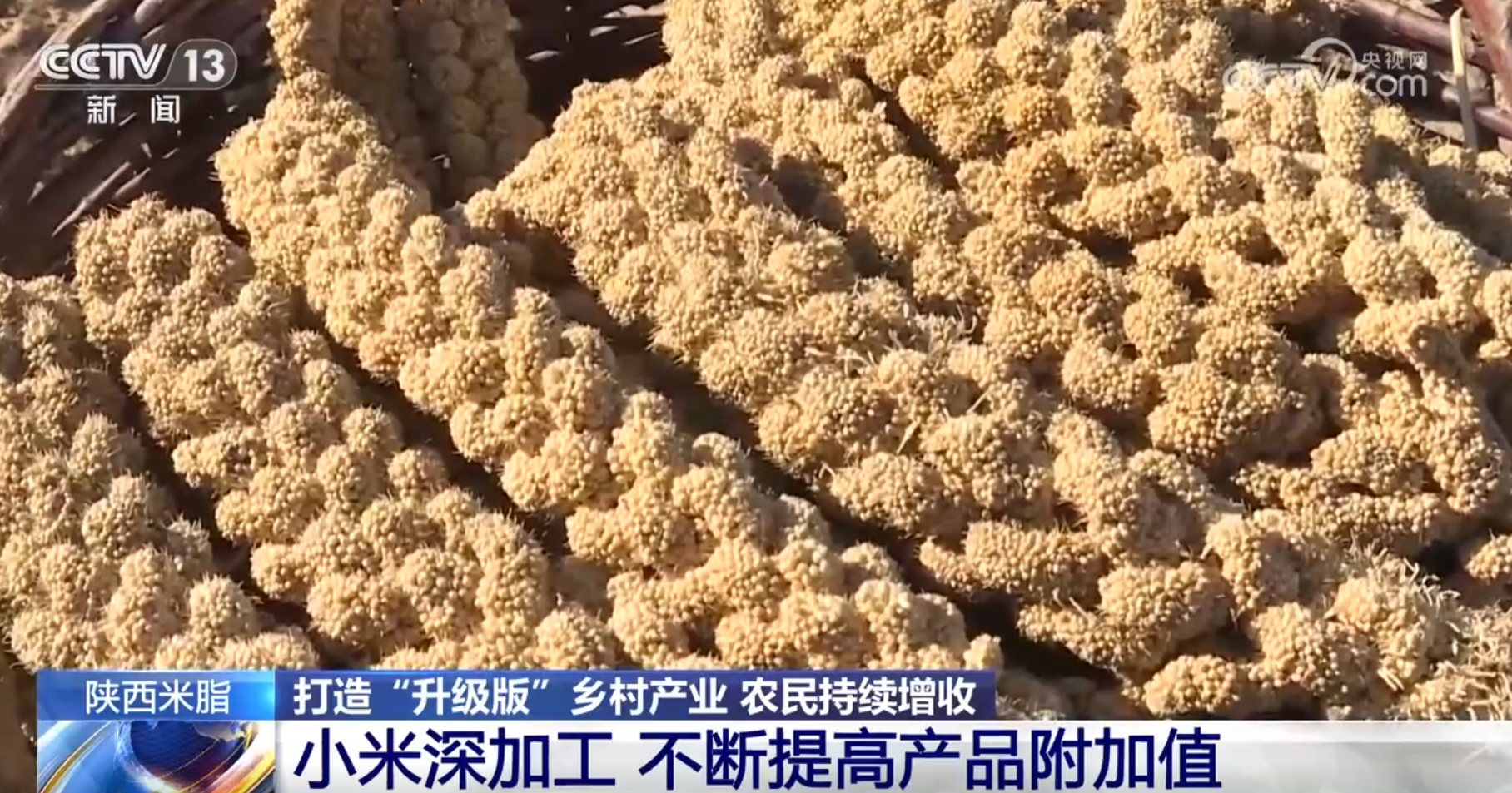 眼下正值陜北小米的收獲季節(jié),在陜西省米脂縣,農(nóng)戶們晾曬好的小米正在產(chǎn)業(yè)園里進(jìn)行深加工。為了推動小米產(chǎn)業(yè)升級,全縣15家小米加工企業(yè)一頭與206個專業(yè)合作社、1.6萬戶谷農(nóng)建立訂單合作,另一頭則與科研院所合作,不斷研發(fā)推出休閑食品、保健食品。三年來,當(dāng)?shù)丶庸て髽I(yè)年產(chǎn)值已從7.2億元增加到8.72億元。