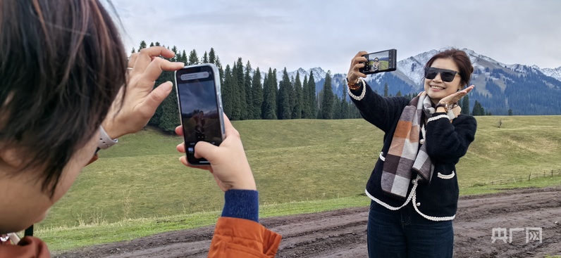 第二次來到庫爾德寧的李明站在草原之上、雪山之下、云杉之中,舉起相機(jī)拍個(gè)不停?!靶陆木吧挥心阏嬲驹谶@里了,用自己的眼睛看到,你就會(huì)覺得什么是美好,無法用語言去形容的美,直抵心靈的美?!崩蠲髡f,雖然他是第二次來,但和第一次來時(shí)看到的風(fēng)景又不一樣了,新疆真是一年四季都會(huì)有不同的景色,任何時(shí)候來都非常值得,不虛此行。