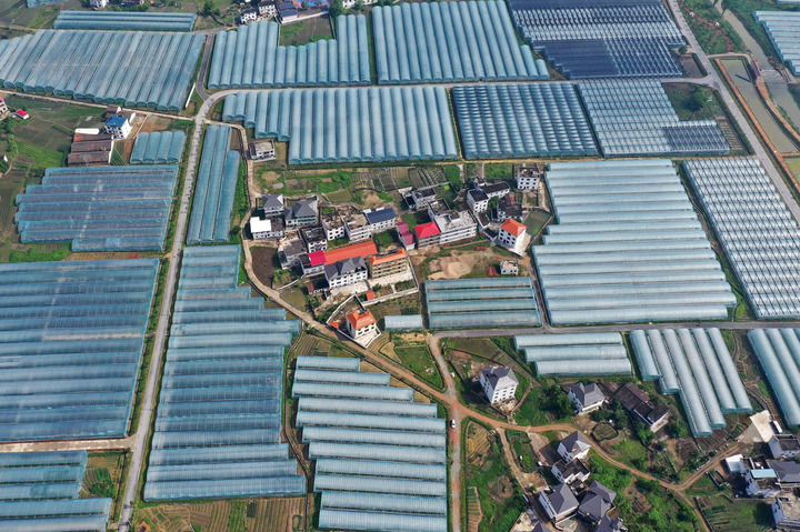 這是江西省贛州市于都縣梓山鎮(zhèn)潭頭村的果蔬種植基地(2021年4月29日攝,無(wú)人機(jī)照片)。新華社記者 萬(wàn)象 攝