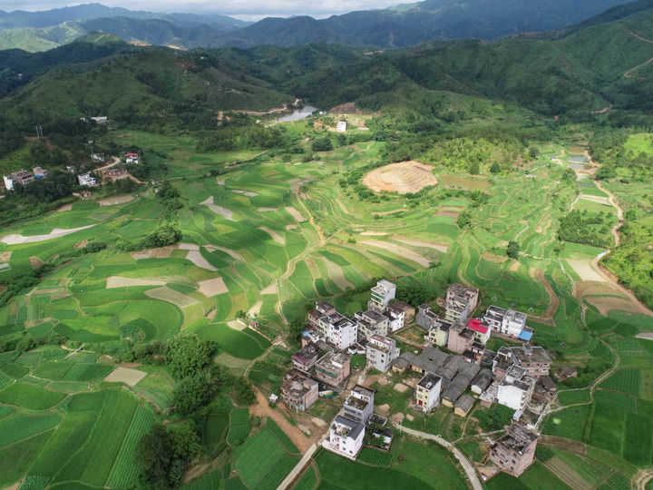 江西省贛州市于都縣段屋鄉(xiāng)寒信村景色(2019年6月13日攝,無(wú)人機(jī)照片)。新華社記者 周密 攝