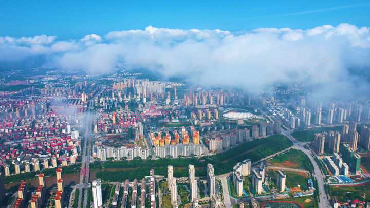 江西省瑞金市城區(qū)景色(2024年5月6日攝,無(wú)人機(jī)照片)。新華社發(fā)(劉黎明 攝)