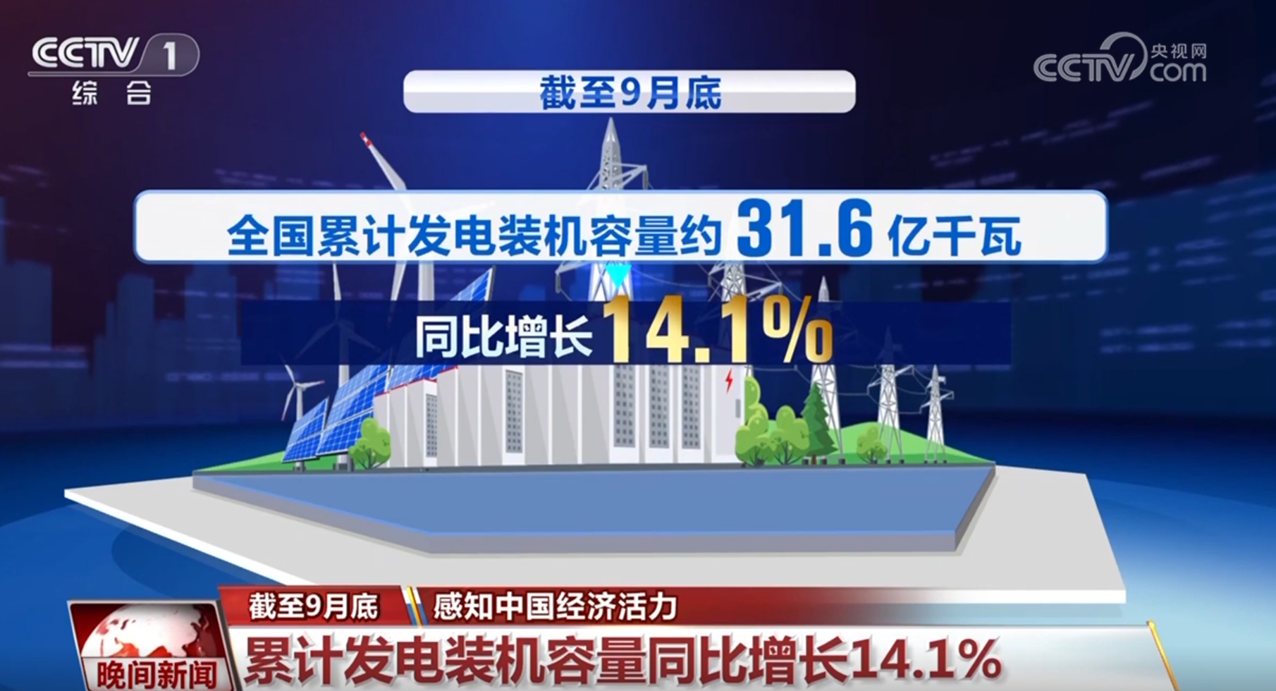 國(guó)家能源局10月21日發(fā)布數(shù)據(jù)顯示,截至9月底,全國(guó)累計(jì)發(fā)電裝機(jī)容量約31.6億千瓦,同比增長(zhǎng)14.1%。其中,太陽(yáng)能發(fā)電裝機(jī)容量約7.7億千瓦,同比增長(zhǎng)48.3%;風(fēng)電裝機(jī)容量約4.8億千瓦,同比增長(zhǎng)19.8%,我國(guó)能源電力綠色轉(zhuǎn)型持續(xù)深入。