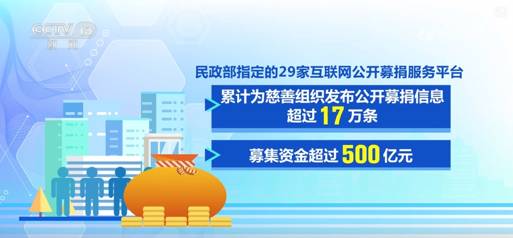 目前,全國共登記認定慈善組織超過1.5萬家,是五年前的三倍;全國累計備案慈善信托2062單,是五年前的十五倍。年度捐贈總額最高突破2000億元,民政部指定的29家互聯(lián)網(wǎng)公開募捐服務(wù)平臺累計為慈善組織發(fā)布公開募捐信息超過17萬條,募集資金超過500億元。