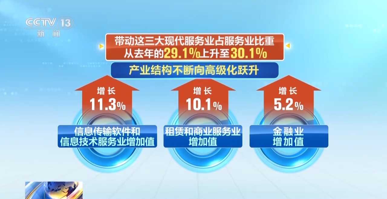 產業(yè)結構持續(xù)升級。前三季度,裝備制造業(yè)增加值占全部規(guī)模以上工業(yè)的比重達33.8%,已連續(xù)19個月保持在30%以上。信息傳輸軟件和信息技術服務業(yè)、租賃和商業(yè)服務業(yè)、金融業(yè)增加值分別以11.3%、10.1%和5.2%的速度快速增長,帶動這三大現(xiàn)代服務業(yè)占服務業(yè)比重從去年的29.1%上升至30.1%,產業(yè)結構不斷向高級化躍升。