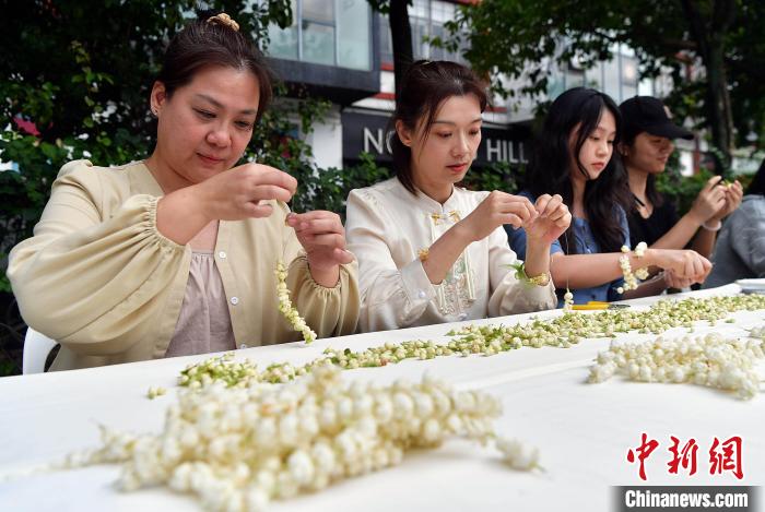鄒曉娜在現(xiàn)場進(jìn)行茉莉花手環(huán)制作。她表示,茉莉花是福州的市花,和兩岸朋友一起制作茉莉花手環(huán),很有意義,而且能讓大家對福州有更深入的認(rèn)識(shí)。