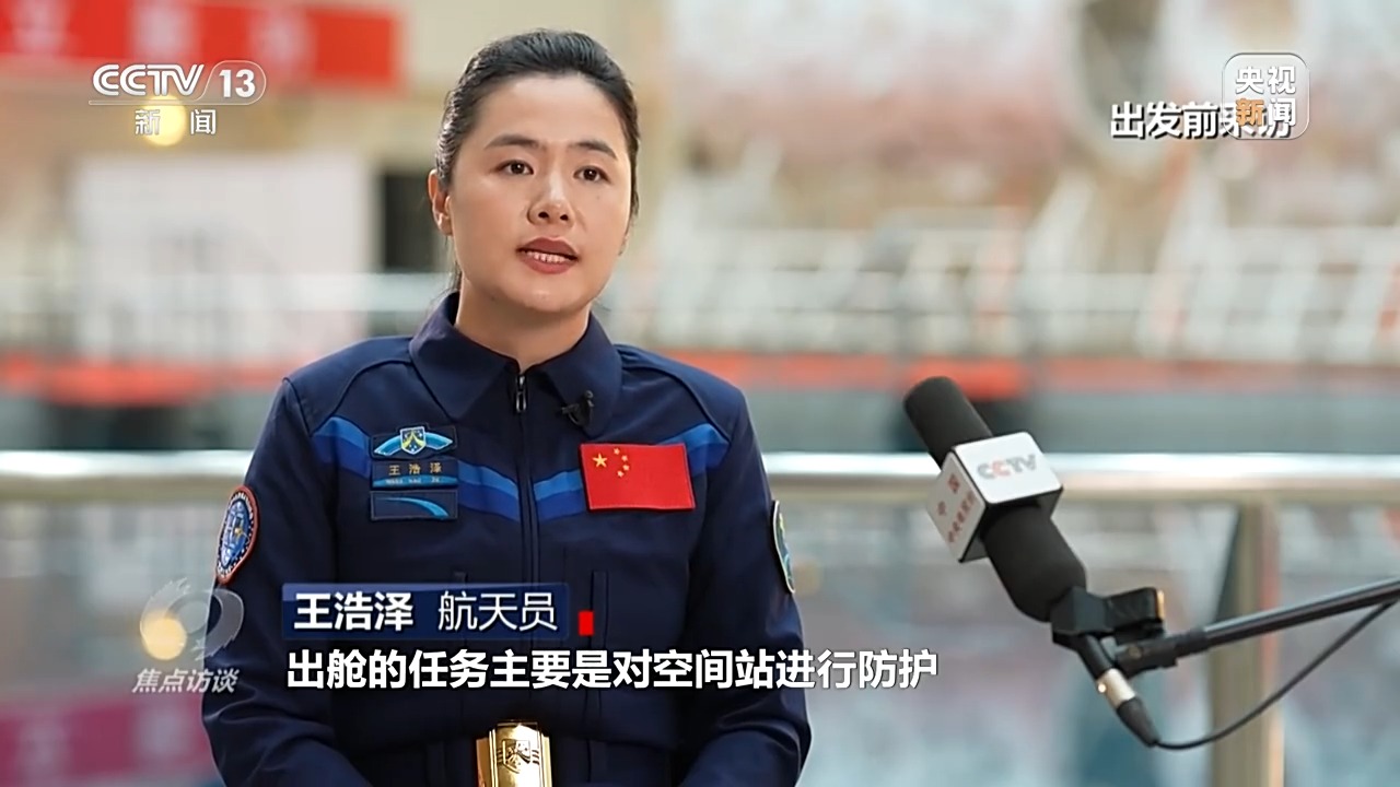 航天員 王浩澤:出艙的任務主要是對空間站進行防護。因為在空間里面運行,空間站它有可能會受到微流星、空間碎片干擾,甚至是沖擊,所以我們要對艙外的一些重要管路、設備進行防護。