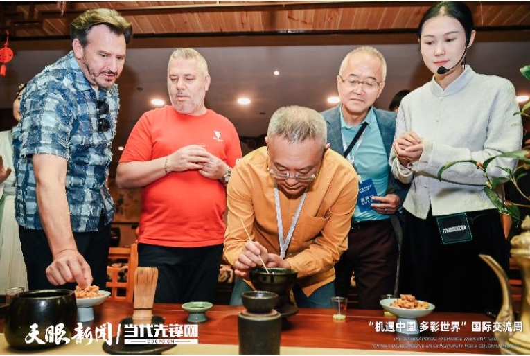 打卡“天下第一壺”景觀,參訪團層層爬樓,領(lǐng)略“壺中”的每一處風情,體驗茶道茶藝,欣賞茶山茶歌,真可謂是“茶里乾坤大,壺中日月長”。