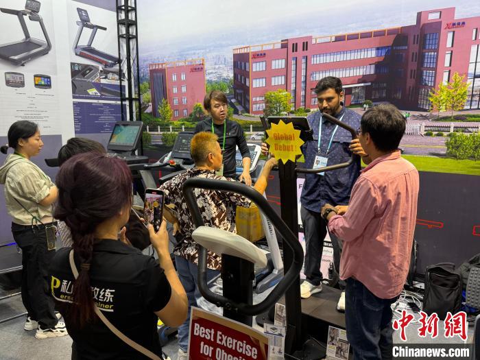 11月2日,廣交會境外采購商在體驗(yàn)新款體育類產(chǎn)品。記者 蔡敏婕 攝