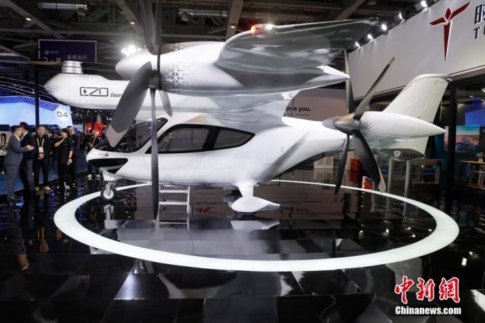 11月5日,在第七屆進(jìn)博會(huì)汽車展區(qū),上海時(shí)的科技公司展示E20傾轉(zhuǎn)旋翼載人電動(dòng)垂直起降飛行器。第七屆中國(guó)國(guó)際進(jìn)口博覽會(huì)于11月5日至10日在上海舉行。中新社記者 殷立勤 攝