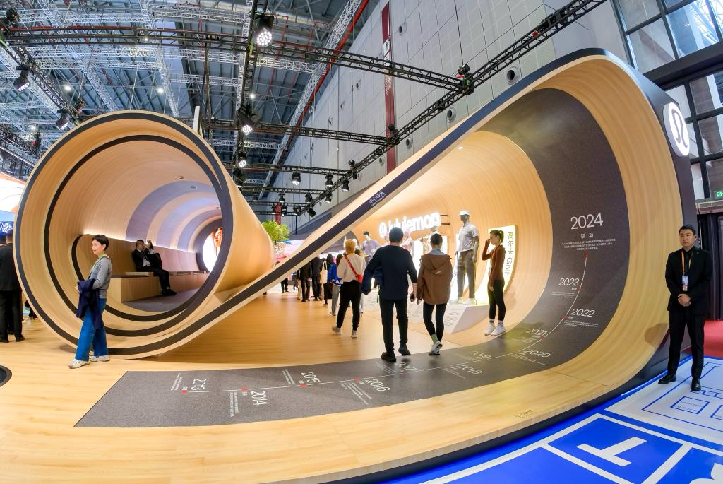 11月7日,觀眾在進(jìn)博會(huì)消費(fèi)品展區(qū)露露樂(lè)蒙展位參觀。新華社記者 張鋮 攝