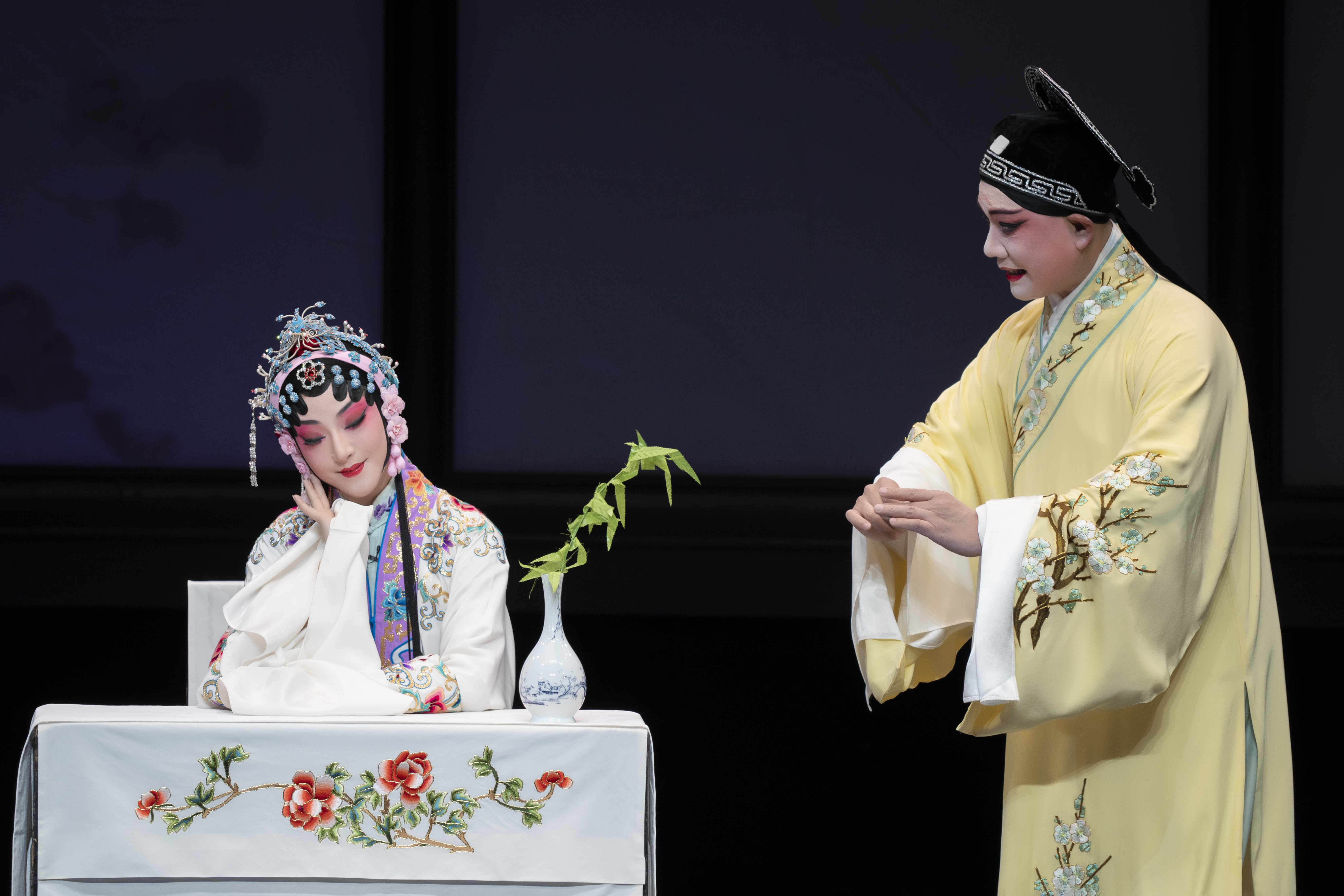 從地域角度來看,五位“杜麗娘”分別來自江蘇省演藝集團(tuán)昆劇院、北方昆曲劇院、上海昆劇團(tuán)、蘇州市蘇劇傳習(xí)保護(hù)中心、昆山當(dāng)代昆劇院,這不僅反映了昆曲在全國(guó)范圍內(nèi)的廣泛影響力,也展示了不同地域文化對(duì)昆曲藝術(shù)的影響。盡管昆曲有“北昆”與“南昆”之分,但在《牡丹亭》這部經(jīng)典作品中,兩者之間的差異并不顯著。然而,地域文化的差異和個(gè)人對(duì)角色理解的不同,使得每位演員的表演獨(dú)具風(fēng)格,如同書法家臨帖般各有千秋,這也讓人深刻感受到了昆曲藝術(shù)在時(shí)間長(zhǎng)河中的生生不息與熠熠生輝。