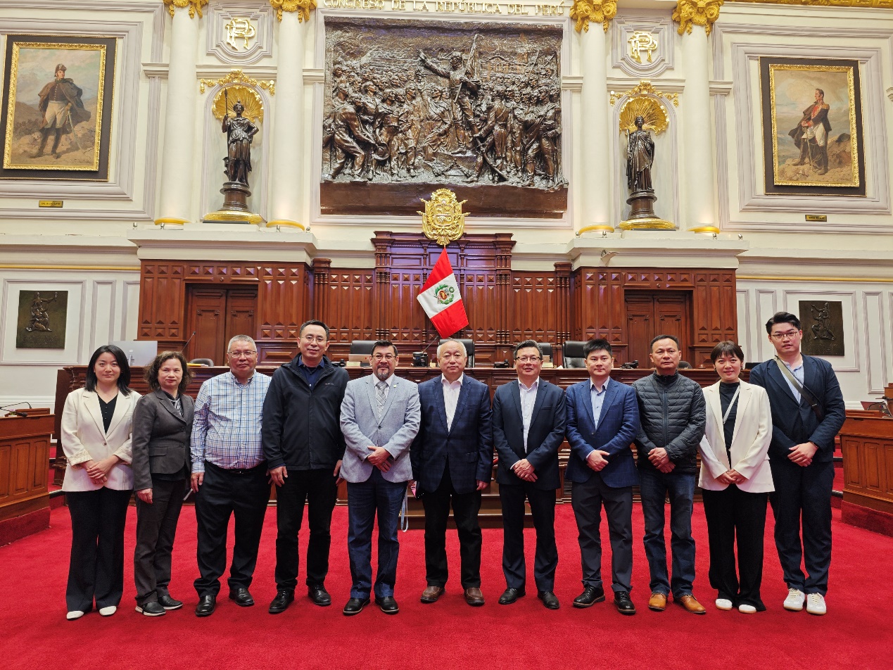 11月7日,中國新聞社采訪團一行在秘魯國會采訪秘魯國會議員兼秘中協(xié)會友好聯(lián)盟主席路易斯·科爾德羅·楊·戴(左五)。