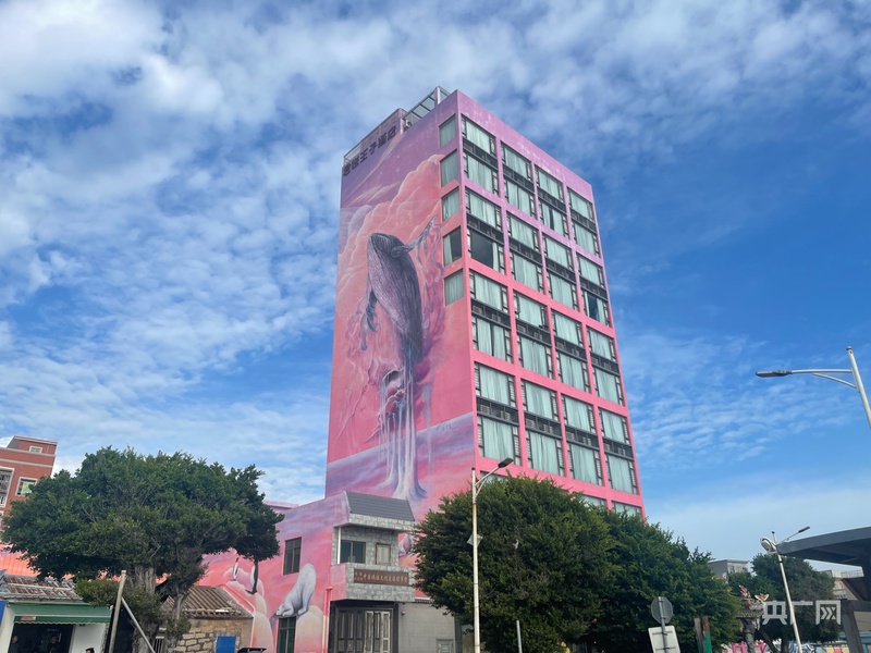 紅海灣開發(fā)區(qū)遮浪街道水龜寮村海濱街建筑外立面的“夢(mèng)境鯨山”畫作(央廣網(wǎng)見習(xí)記者 張順鵬 攝)
