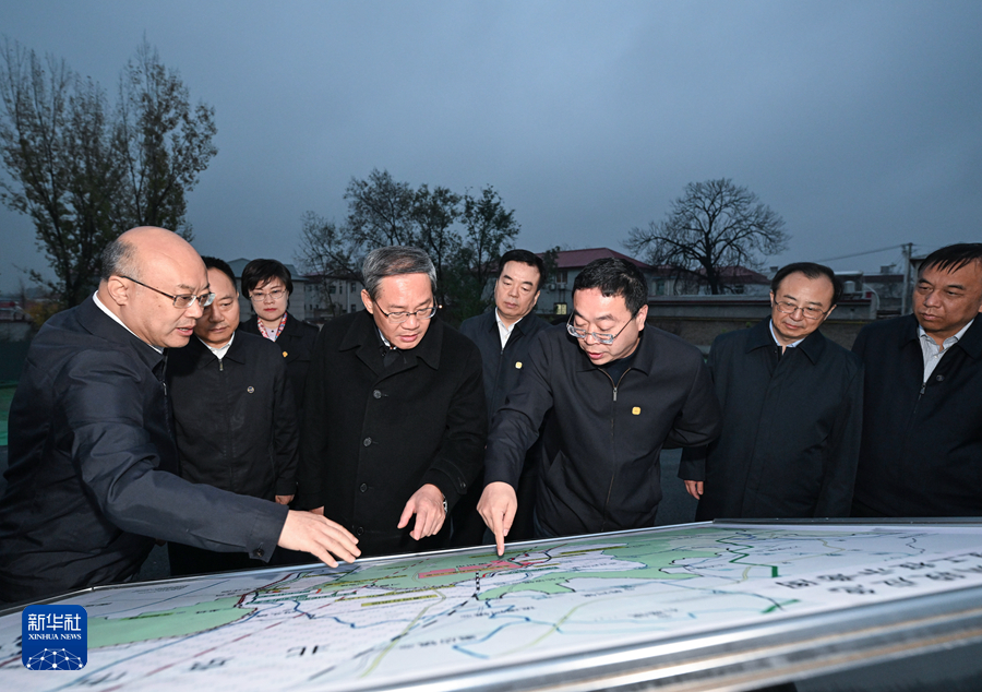 11月13日,中共中央政治局常委、國務院總理李強在河北調(diào)研。這是李強在涿州市小清河分洪區(qū)南圍堤建設工程現(xiàn)場,察看項目最新進展,聽取河北省災后重建重大水利工程等情況匯報,與設計施工監(jiān)理人員交流。新華社記者 饒愛民 攝