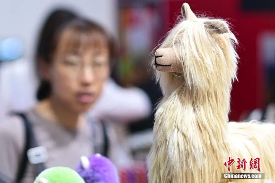 2023年9月4日,服貿(mào)會國家會議中心展區(qū),秘魯展臺羊駝毛制品吸引參觀者。中新社記者 田雨昊 攝