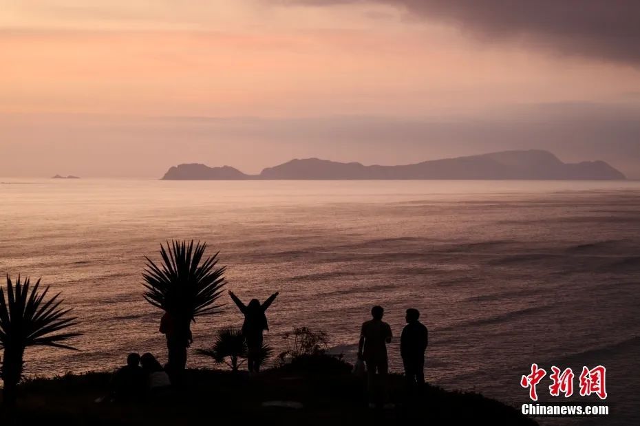 當(dāng)?shù)貢r間11月12日,秘魯首都利馬,日落時分的海岸線美景。中新社記者 盛佳鵬 攝