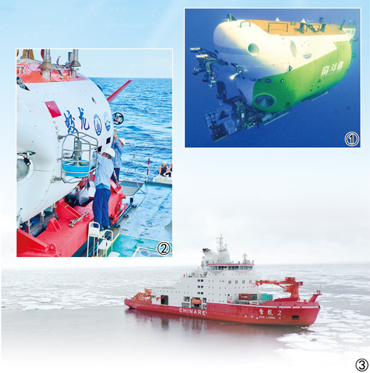 圖①:“奮斗者”號(hào)注水下潛。中國(guó)科學(xué)院深??茖W(xué)與工程研究所供圖