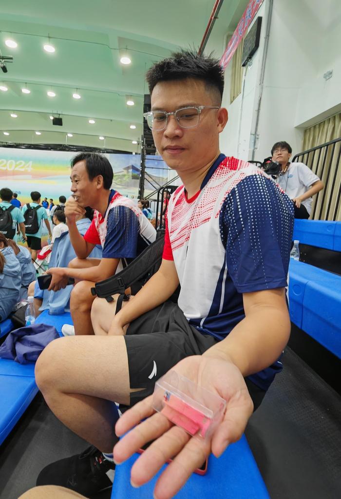 “香港隊很厲害,沒想到他們還給我們準(zhǔn)備了禮物,挺驚喜的?!蔽鞑仃犽η蜻\動員韋盛森從褲兜里掏出一個精致的粉色毽球掛飾給記者看,并懊惱自己沒有準(zhǔn)備禮物?!百惡笪覀兒拖愀坳犝f了很多互相鼓勵的話,我們希望找機會再和他們交流?!?/p>