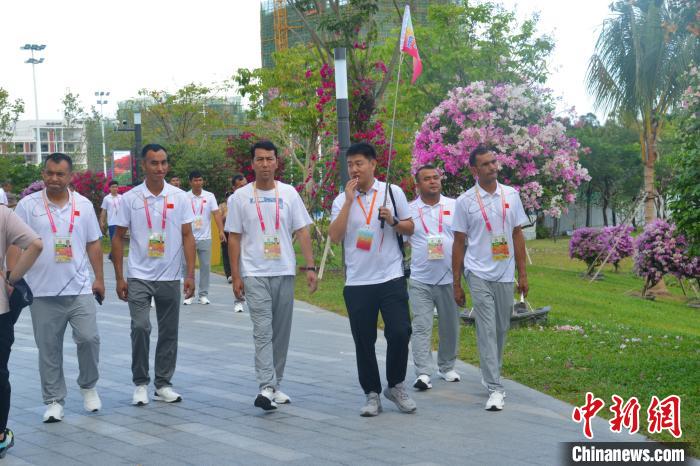 11月25日,海南三亞,第十二屆全國少數民族傳統(tǒng)體育運動會參賽代表團在三角梅科博園參觀考察。張月和 攝