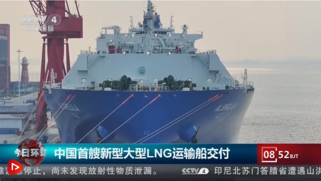 中國自主研制的首艘新型大型LNG液化天然氣運輸船11月25日在上海交付國外用戶。這型船采用了國際先進的新型貨艙系統(tǒng),一次運輸量可滿足一個城市一個月的供給需求,填補了中國在該船型建造領域的空白。