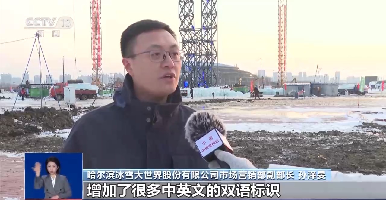 哈爾濱冰雪大世界股份有限公司市場營銷部副部長 孫澤旻:增加了很多中英文的雙語標識,同時增加了英文的導游導覽服務(wù)。為了方便外國游客可以在園區(qū)內(nèi)購票,增加了可以識別護照、識別國際支付的支付系統(tǒng)和購票系統(tǒng)。
