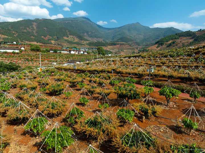 這是2024年4月9日拍攝的四川省攀枝花市米易縣新山傈僳族鄉(xiāng)中山村芒果產業(yè)園(無人機照片)。新華社記者 沈伯韓 攝